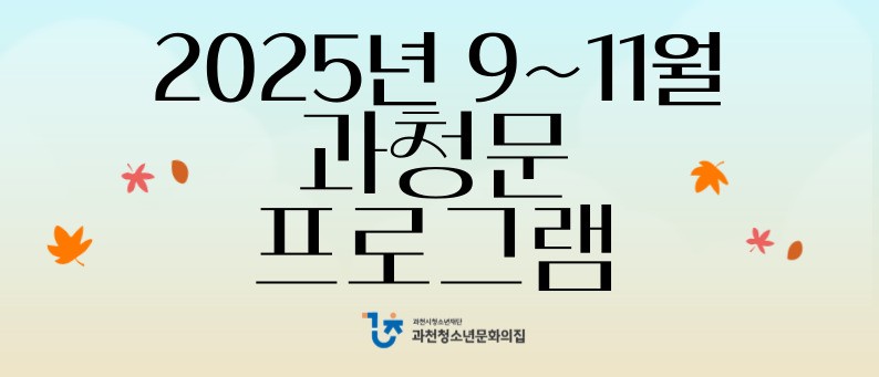 [ 2025년 9~11월 프로그램 안내 및 모집 ] 😺청소년 동아리 신청서 확인해보기😸 🌍그린 프로젝트 신청하기 🌍 🦉자치조직 연합 워크샵 올빼미 캠프 신청하기 🌃 💃🏻청소년 문화 프로그램 아이돌 댄스반 수강생 신청하기🕺🏻 🚀4차산업 체험 프로그램 블록코딩반 신청하기🛰️ 🥐원데이 베이킹 클래스 신청하기🥨 🧵인증제 프로그램 친환경 메이킹 투게더 신청하기🌎 * 각 프로그램을 클릭하시면 신청서 작성 페이지로 이동됩니다 * * 모든 프로그램은 무료로 운영되며 필요 재료와 물품은 제공됩니다 * ☎대표전화☎ 02-504-7701