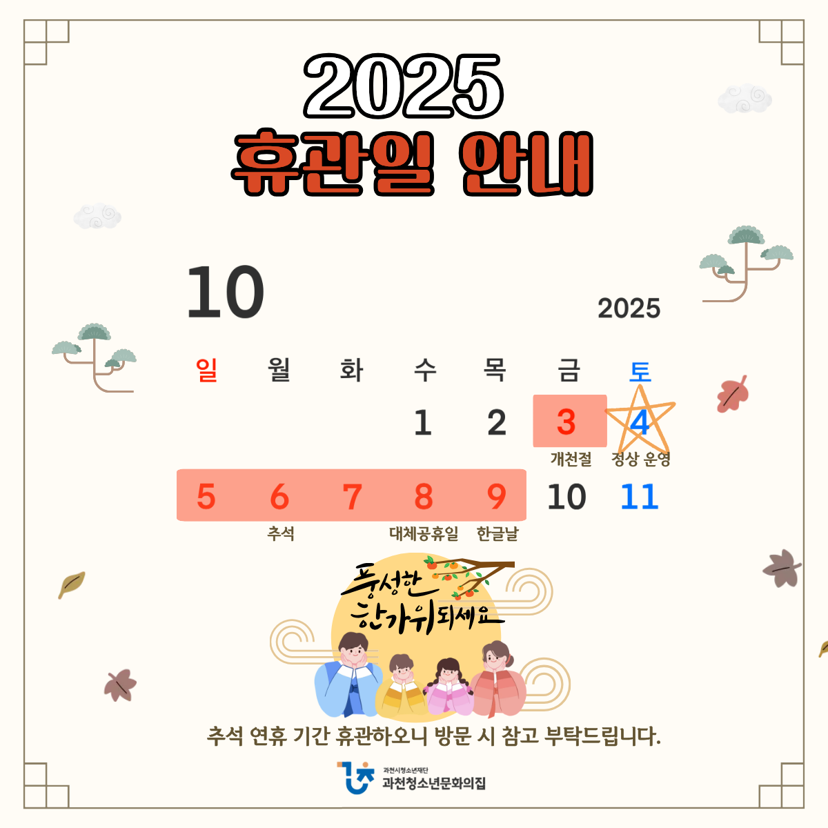 2025년 10월 휴관안내(10/3, 10/5 ~ 10/9)