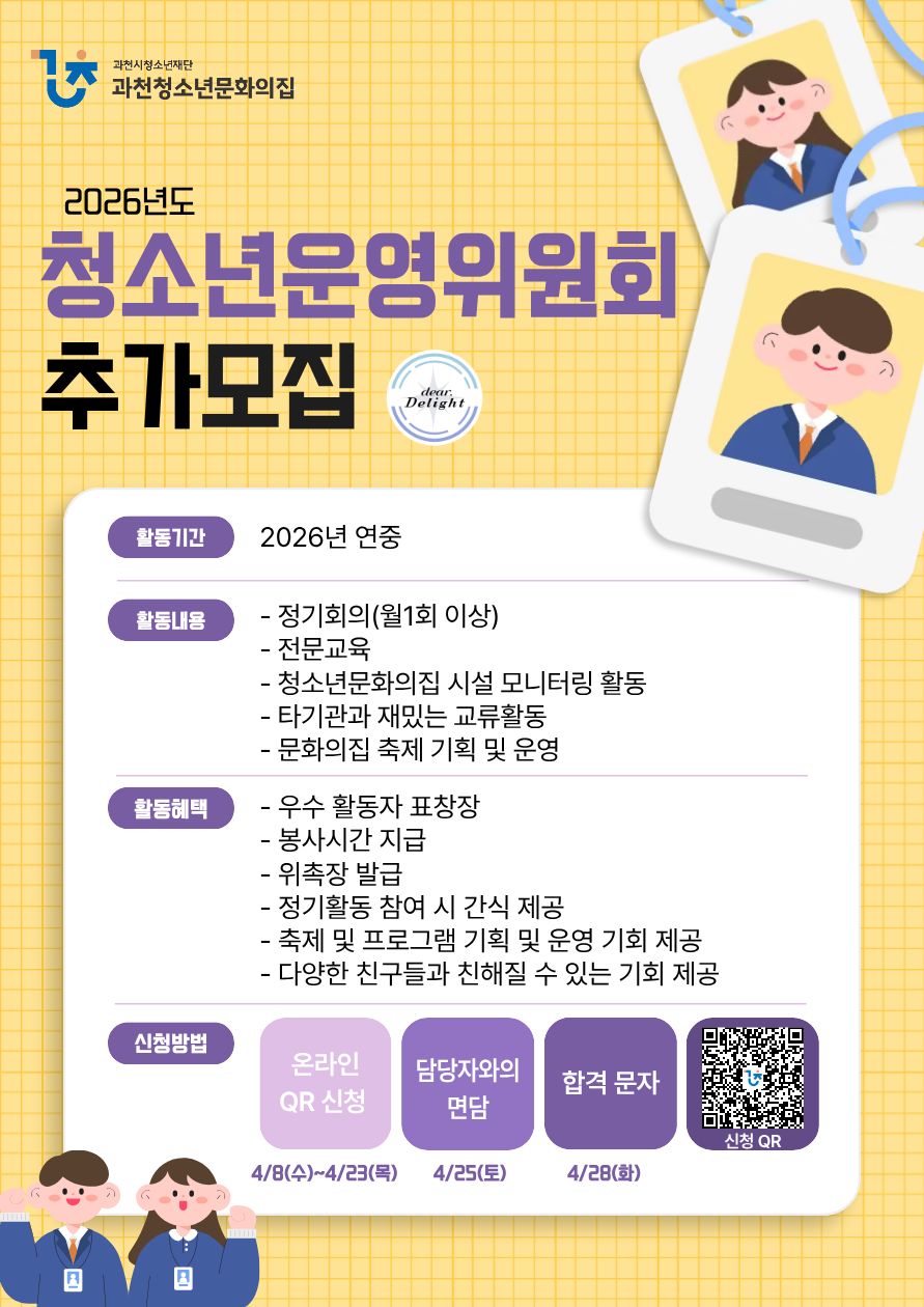 2026년도 청소년운영위원회 6기 추가위원을 모집합니다🥳