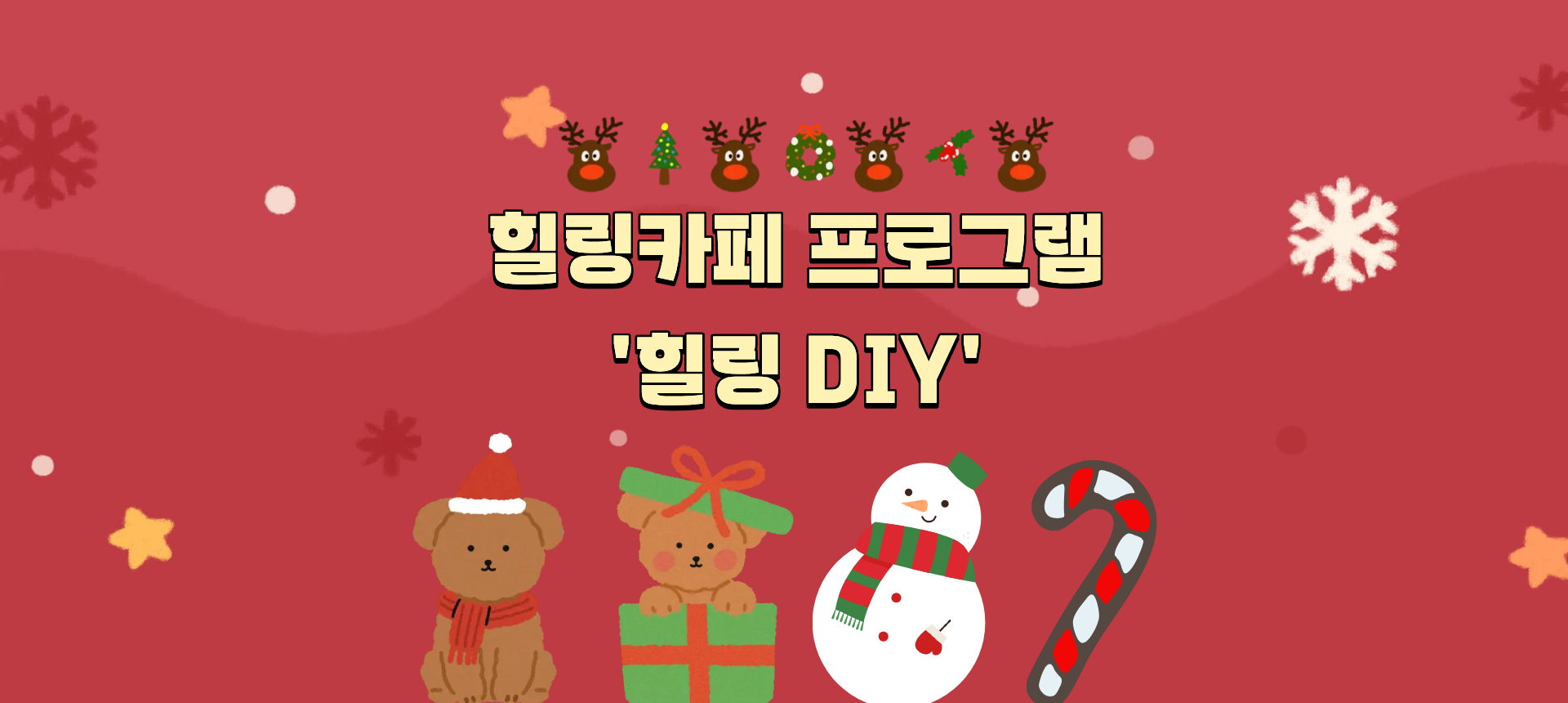 힐링카페 프로그램 '힐링 DIY' 참가자 모집 *운영일시: 12월 매주 토요일 14:00~16:00 *모집인원: 11세~16세 청소년 10명 *활동장소: 과천청소년문화의집 활동실 *활동내용: 회차별 내용 상이 케이크팝 만들기, 마카롱 모양 캔들 만들기, 크리스마스 접시 꾸미기, 키링 만들기 *신청링크: https://forms.gle/Tp2j1E7FvBH32CAv6 *문의전화: 070-4112-5329 회차별 중복 신청 가능합니다. 청소년 여러분의 많은 신청 부탁드려요!