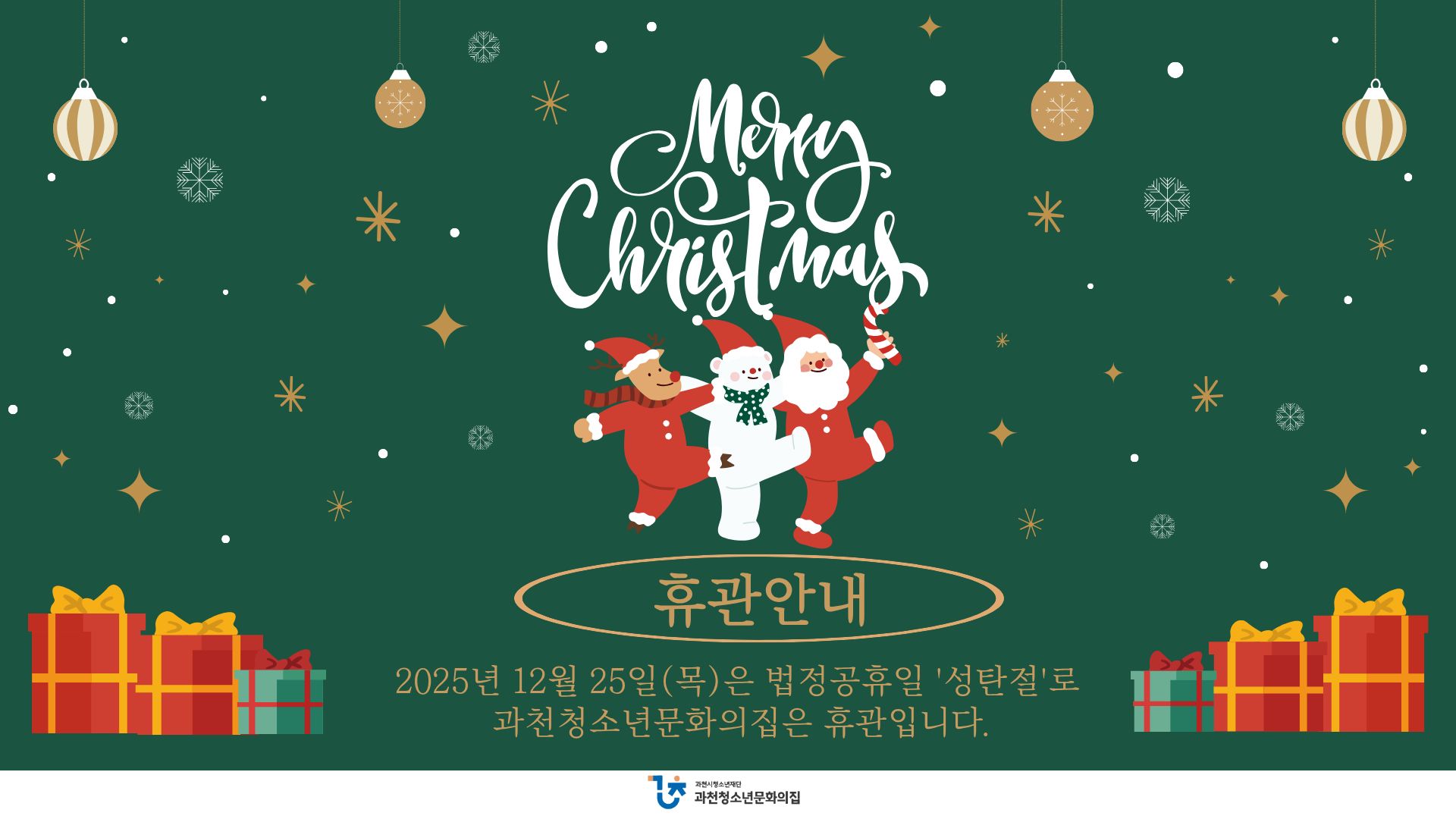 2025년 12/25(목)은 법정공휴일 '성탄절'로 과천청소년문화의집 휴관일 입니다.