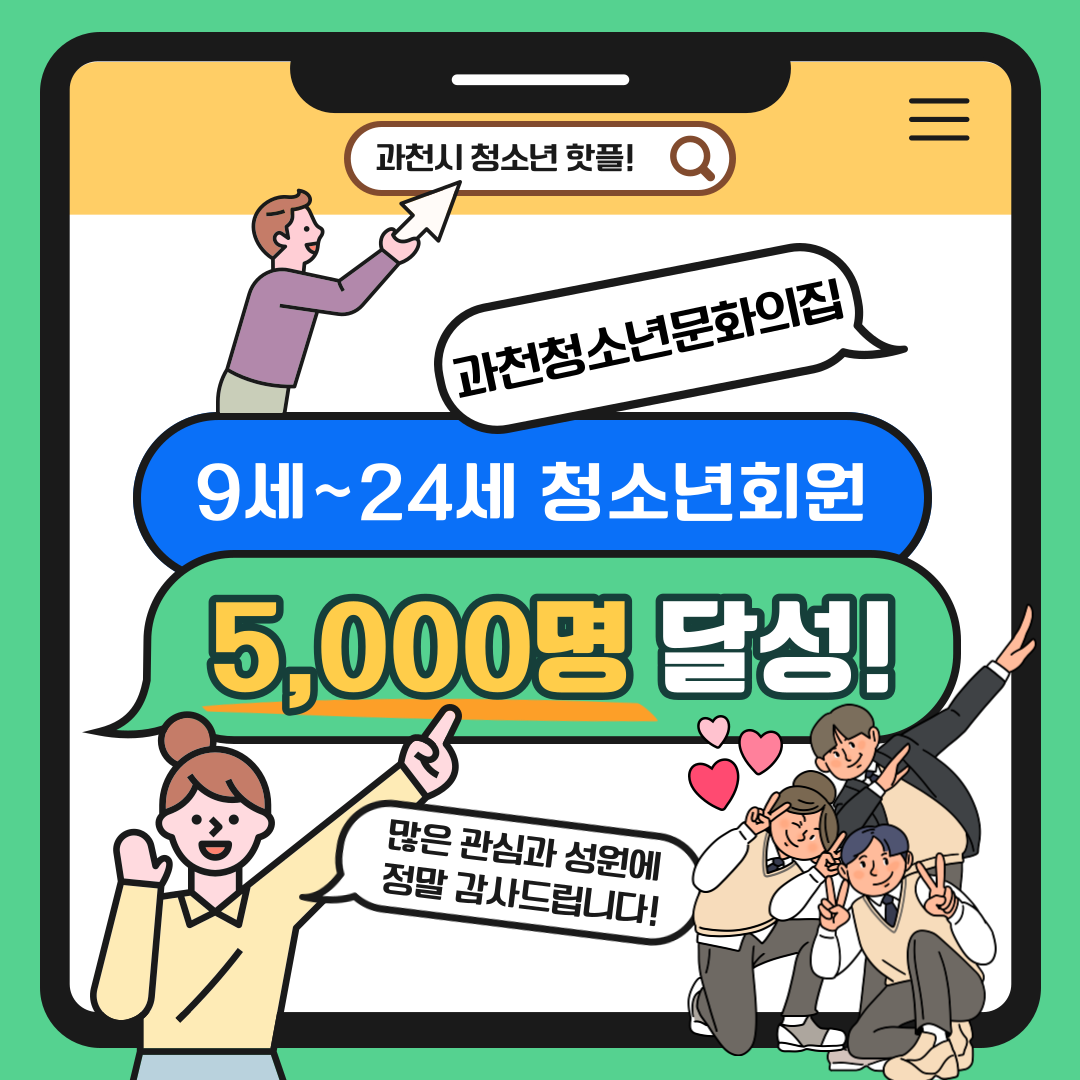 과천청소년문화의집의 청소년 회원이 5,000명을 돌파했습니다!🥳