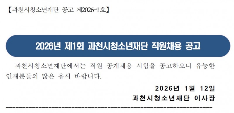 [채용공고] 2026년 제1회 과천시청소년재단 직원 채용 공고