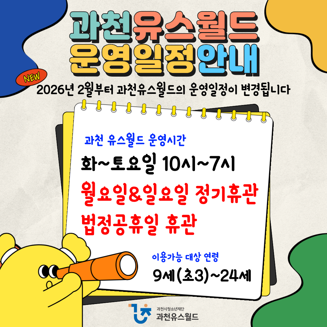안녕하세요. 과천유스월드 운영일정 변경 안내 드립니다.