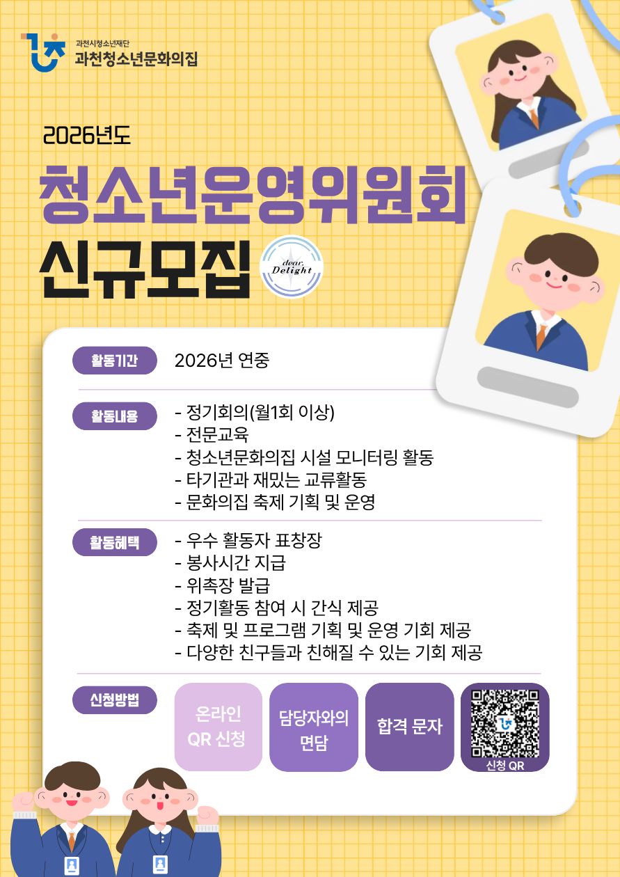 2026년도 청소년운영위원회 6기 신규위원을 모집합니다🥳