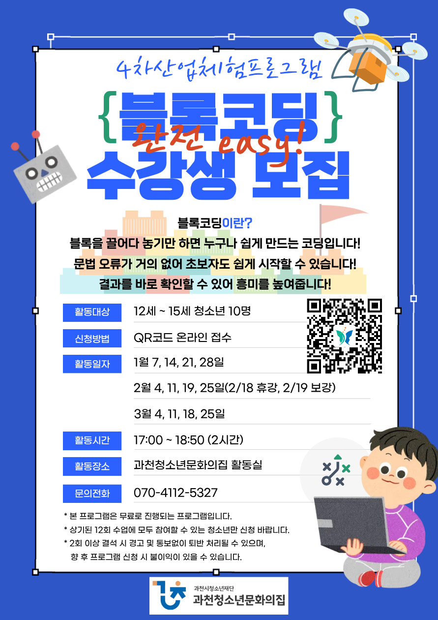 과천청소년문화의집 '블록코딩반' 1~3월 잔여석 모집
