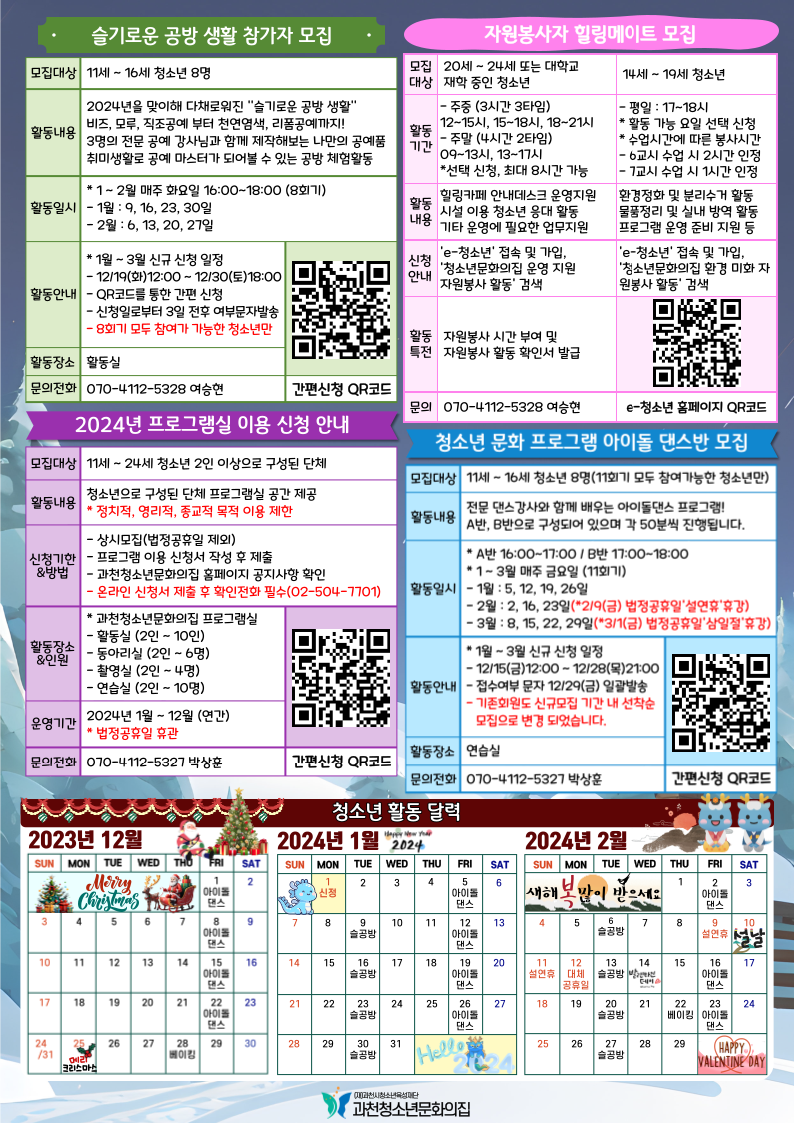 [ 2023년 12월 ~ 2024년 2월 프로그램 안내 및 모집 ]