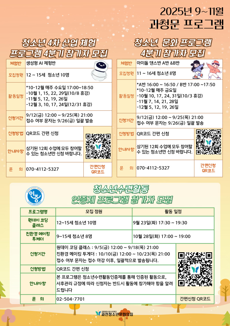 [ 2025년 9~11월 프로그램 안내 및 모집 ]